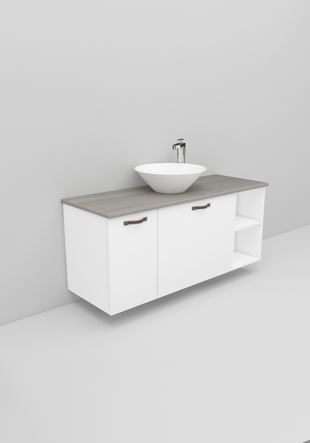 - Fristående handfat och bänkskiva ingår