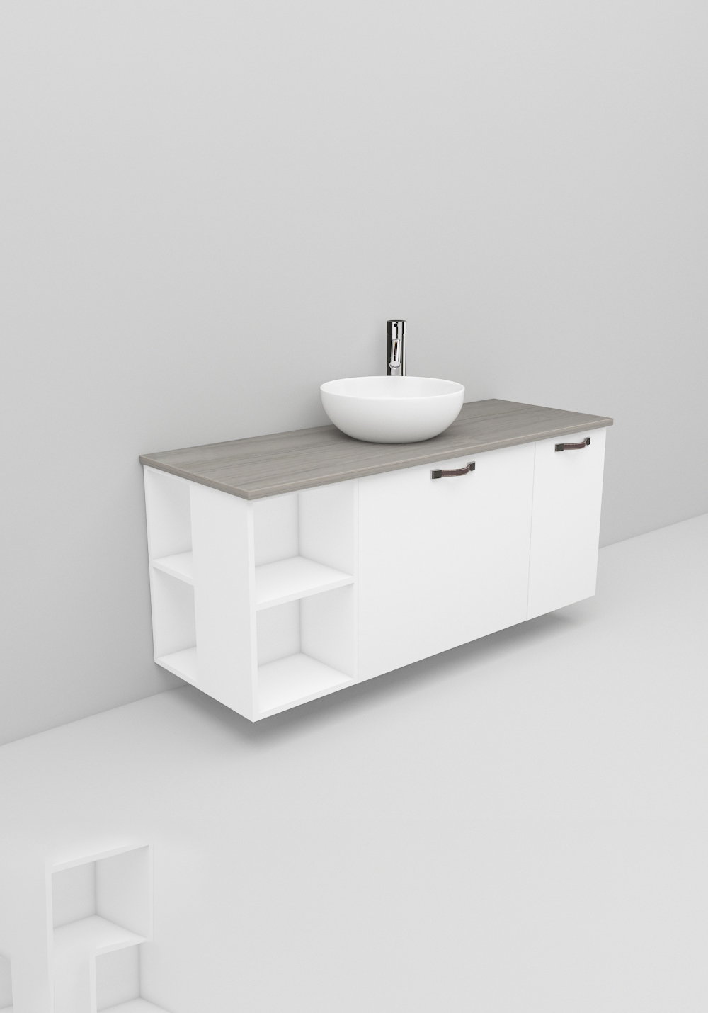 Flexline är badrumsmöbler med tidlös design och många valmöjligheter. Möblerna finns i varianter med både luckor och lådor med Soft Close-funktion, i bredder 600, 900 och 1200 mm och med flera olika utföranden på fronterna som sätter prägel på din möbel. Lyxigt fristående handfat på bänkskiva i Solid Surface marmor eller svart bänkskiva ingår. Köp till handtag, blandare, bottenventil och vattenlås.
