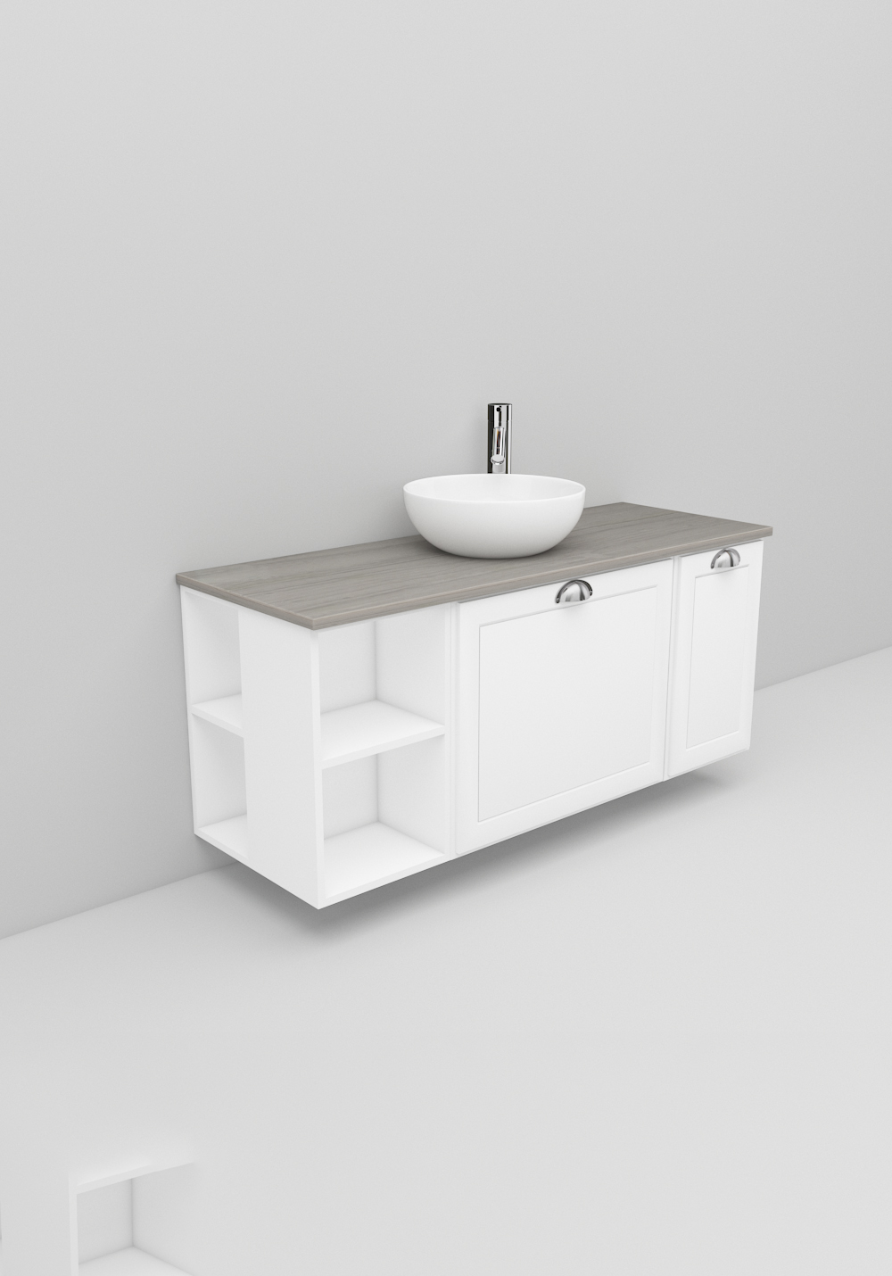 - Fristående handfat och bänkskiva ingår