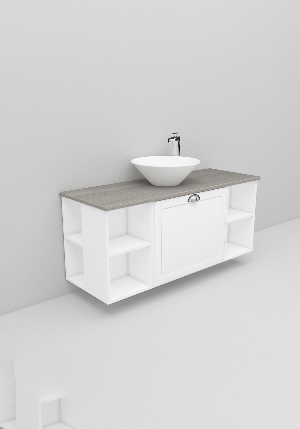 Flexline är badrumsmöbler med tidlös design och många valmöjligheter. Möblerna finns i varianter med både luckor och lådor med Soft Close-funktion, i bredder 600, 900 och 1200 mm och med flera olika utföranden på fronterna som sätter prägel på din möbel. Lyxigt fristående handfat på bänkskiva i Solid Surface marmor eller svart bänkskiva ingår. Köp till handtag, blandare, bottenventil och vattenlås.