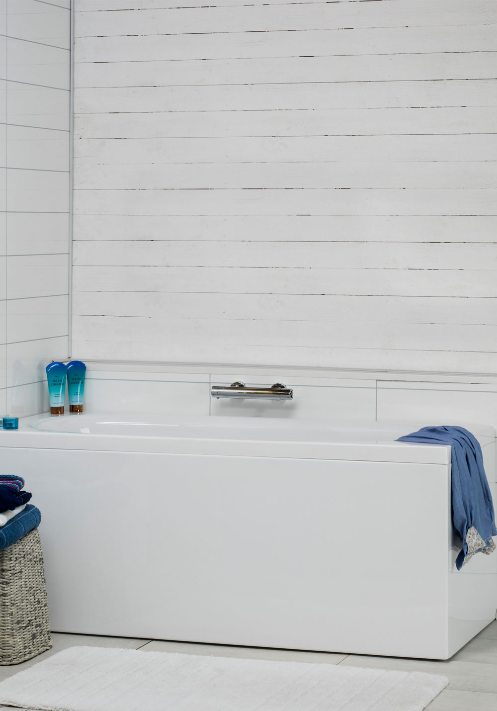 Ett rektangulärt och modernt badkar i sanitetsakryl med raka linjer. Finns i två längder.