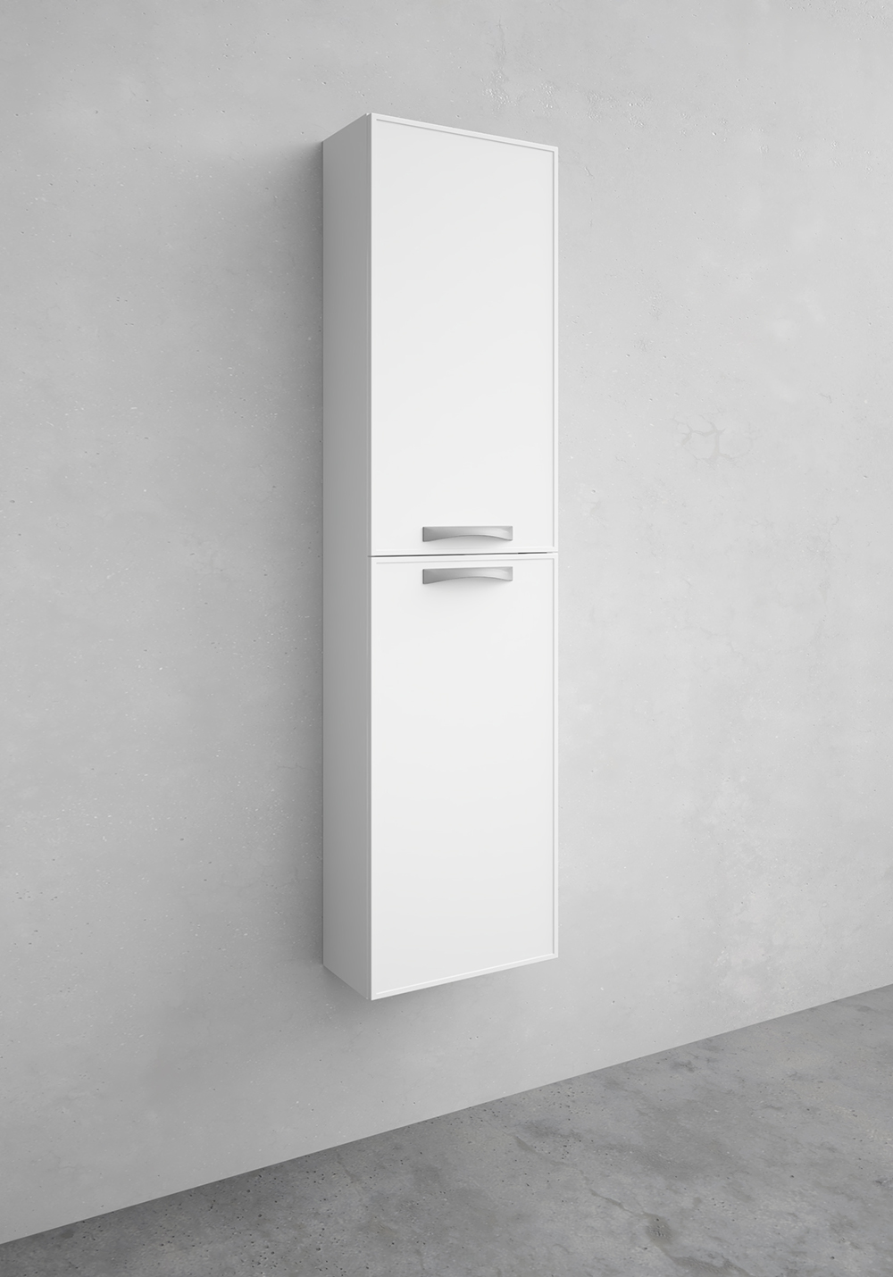 Två mjukstängande dörrar som kan monteras till höger eller vänster. Fyra justerbara glashyllor i höjdled. Levereras monterad. Köp till handtag. Borrmarkeringar handtag: CC 64, 128, 160.
