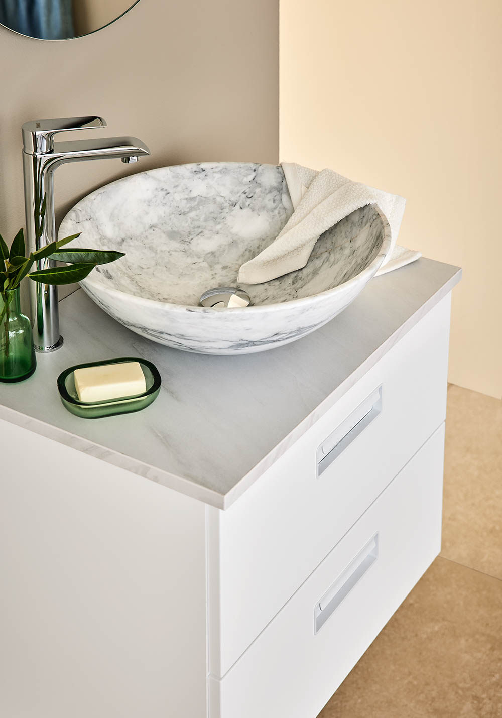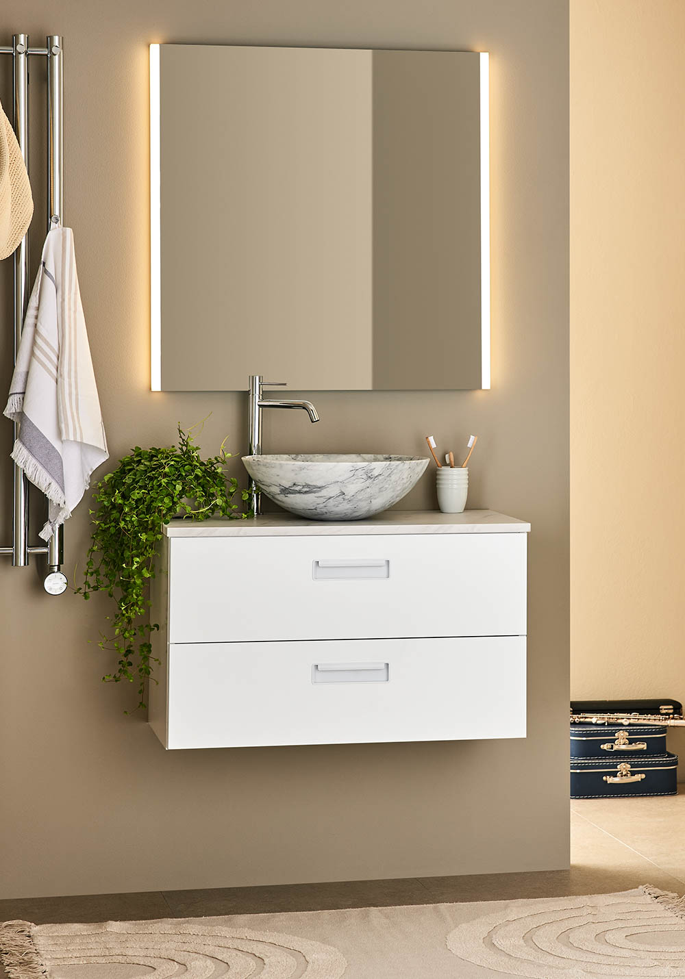 Tvättställsskåp Relounge Vit 800 Med Bänkskiva Ljus Marmor