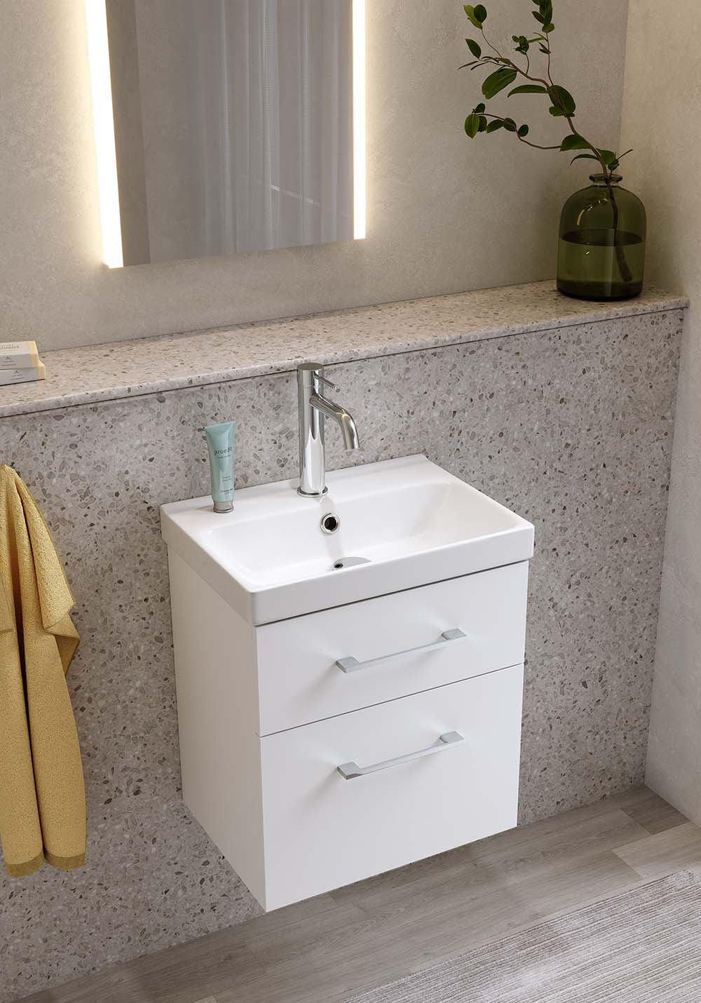 Tvättställsskåp Fix Trend Vit Matt Med Tvättställ 420