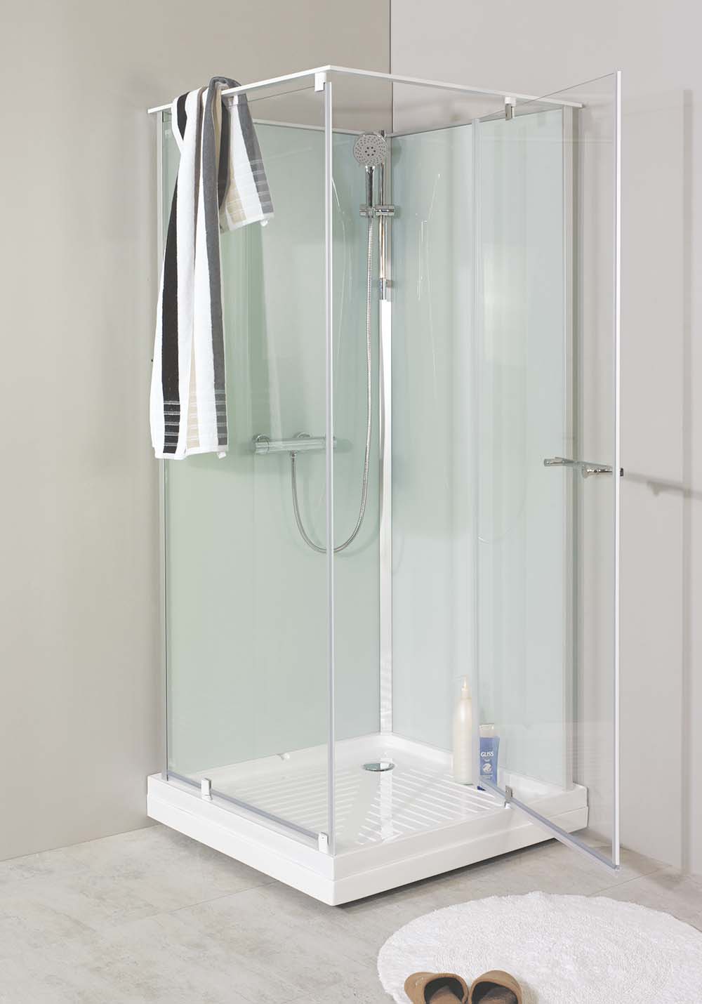 För att underlätta rengöringen av duschdörrar och duschväggar har duscharna stora släta ytor och profiler utan djupa skåror. Missfärgningar tas bort med citron eller vinsyra; skölj noga efteråt. Kalkfläckar tas bort med 50 grader varm hushållsättika: gnid in, låt verka, skölj bort. Upprepa om fläckarna är svåra. Fettfläckar tas bort med rödsprit. Använd inte rengöringsmedel som är etsande, syrahaltiga eller slipande eftersom det kan ge bestående skador på ytan.