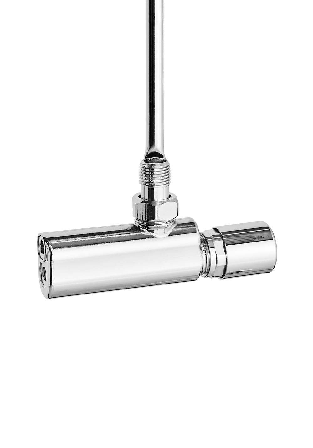 Stilren etthålsventil med inkommande anslutning i cc60 i vinkel som möjliggör anslutning av din handdukstork till det centrala vattenburna värmesystemet. Reglera värmen via det manuella reglaget. Etthålsventilen är tillverkad i gediget material och med kromad yta.