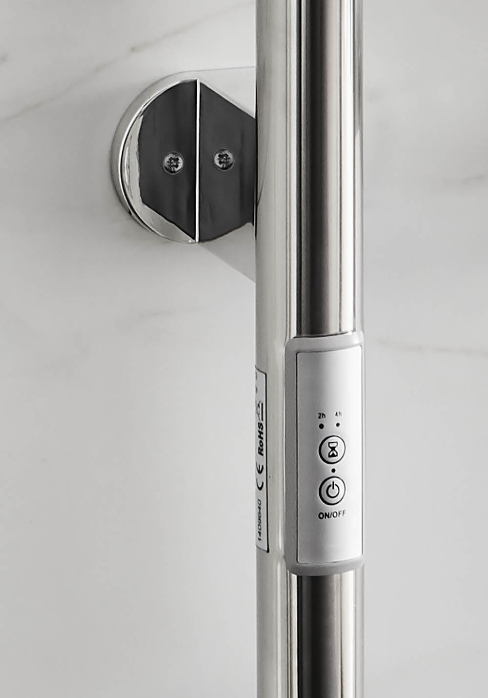 En modern handdukstork med två fasta krokar där dina handdukar kan hänga på tork mellan användningarna. Finns i rostfri blank och svart matt. Den långsmala formen gör att handdukstorken passar bra i trånga badrum och den inbyggda timerfunktionen minskar elförbrukningen. Installera den direkt med stickpropp i ditt el-uttag eller ta hjälp av en elektriker att montera den med dold elanslutning. IP44. Komplett med sladd och stickkontakt samt tillbehör för dold elanslutning.