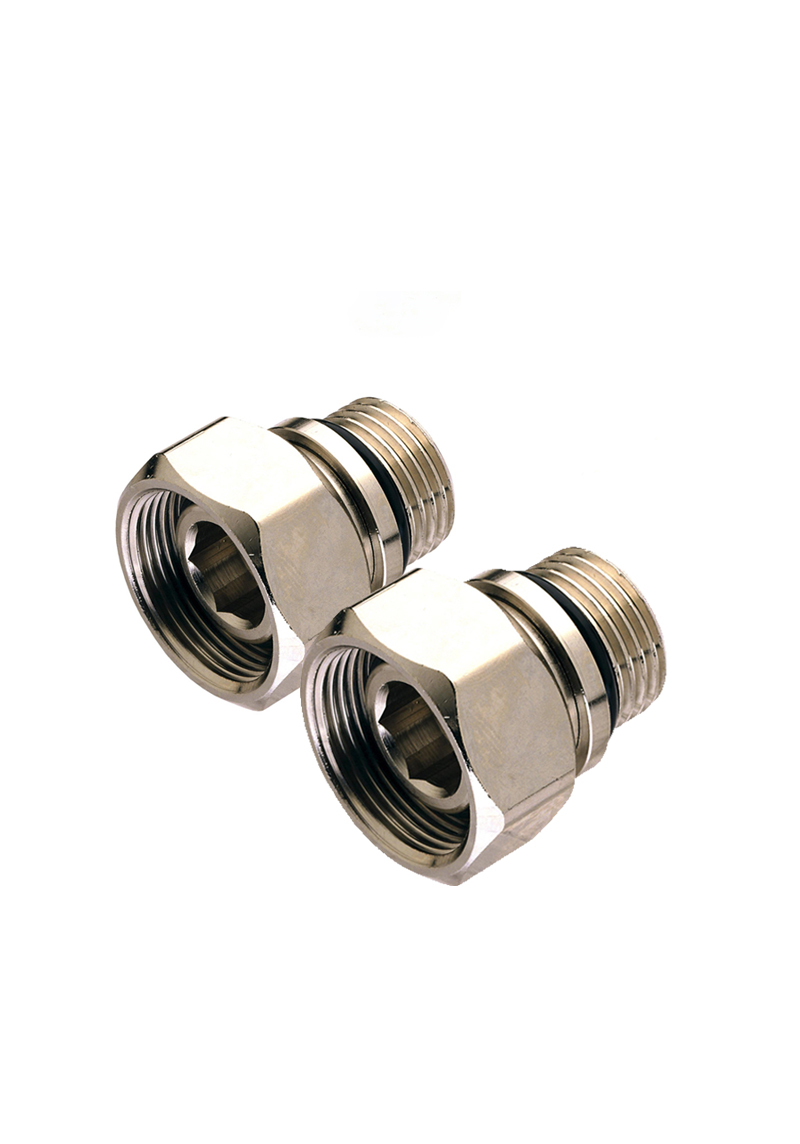 Övergångskoppling för sammankoppling av etthålsventil och radiatorsystem M22/G1/2". Med lekande mutter och o-ringstätning. Tryckklass PN16. (2 pack)