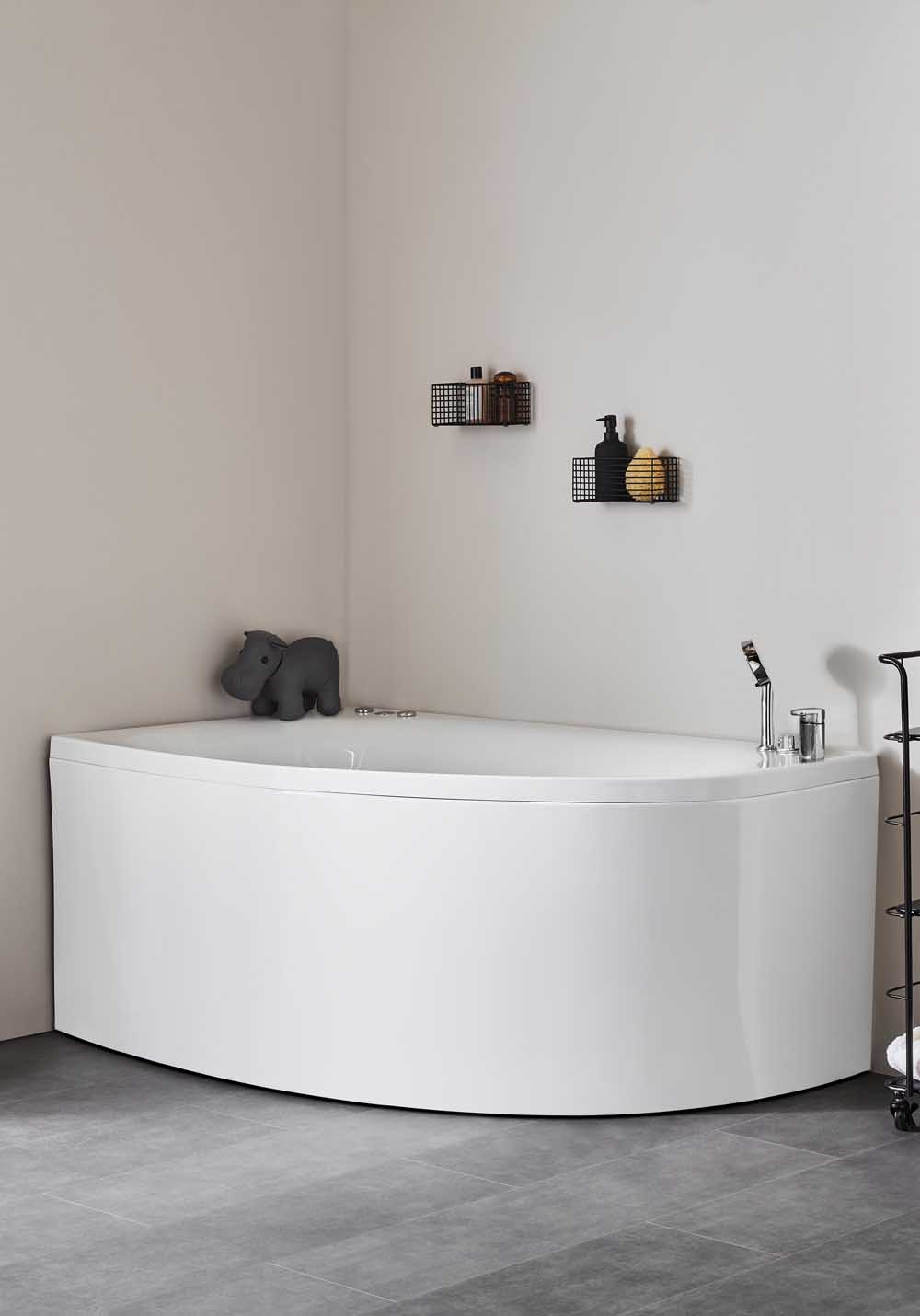 Noro Sand massagebadkar är ett offsetkar i snygg design, utformat för att passa trånga utrymmen. Karet är mycket lättplacerat och passar i de flesta badrum. Finns som höger- eller vänsterutförande.