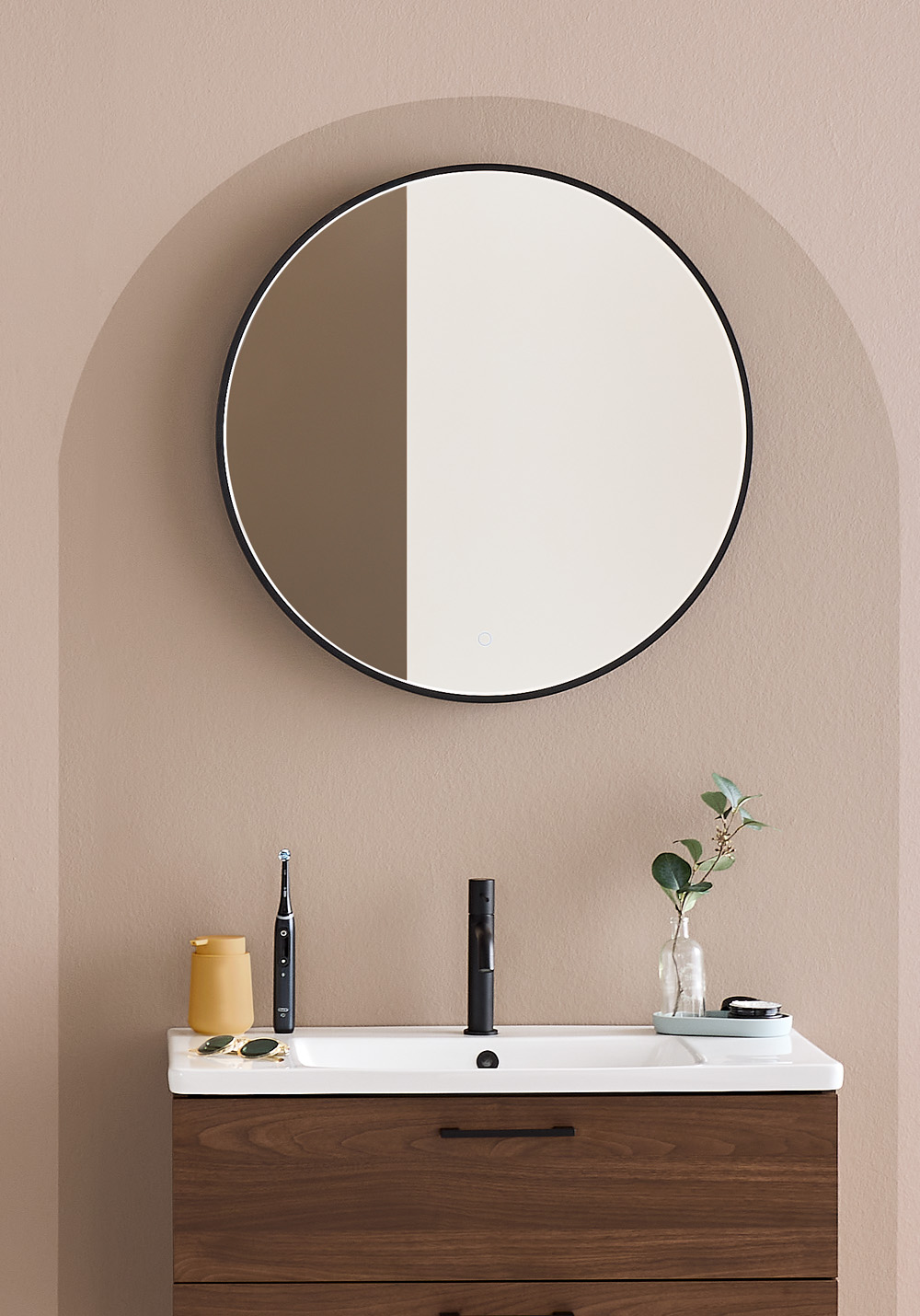 - Elegant, rund spegel med svart ram
