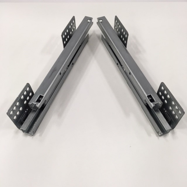 Lådskenor till tvättställsskåpen Flexline och Living. Passar övre och nedre lådan. Säljs i par.