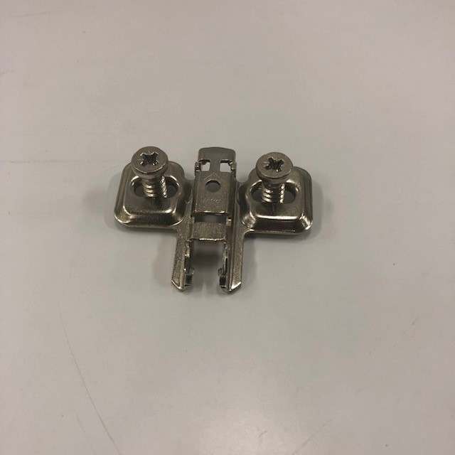 Stomplatta till BLUM spegelskåpsgångjärn. Låg modell (8,5mm) till gångjärnen på de yttre spegeldörrarna. Passar till gångjärn med artikelnummer: 9210240 och 9210264.